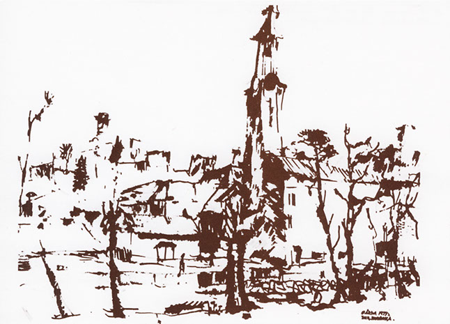 ”Gårda - 1977”, tuschteckning.
